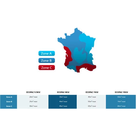 La pompe à chaleur Eco Pac Powerline est déclinée en 4 modèles de 5,5 kW, 8 kW, 11 kW et 15kW, elle répond donc à une large partie des bassins en France de 40 à 100 m³.